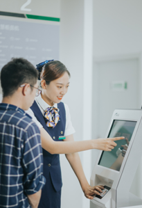 柜面服務(wù)人員向市民介紹便捷服務(wù)