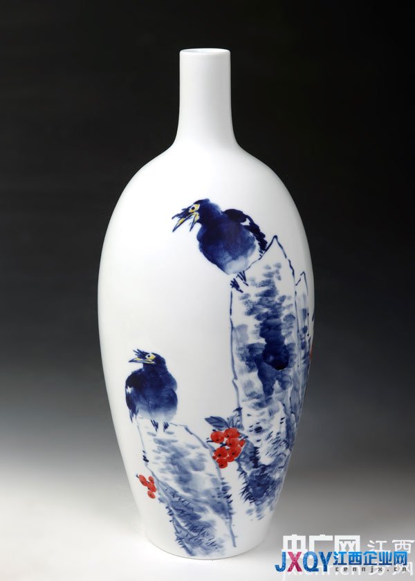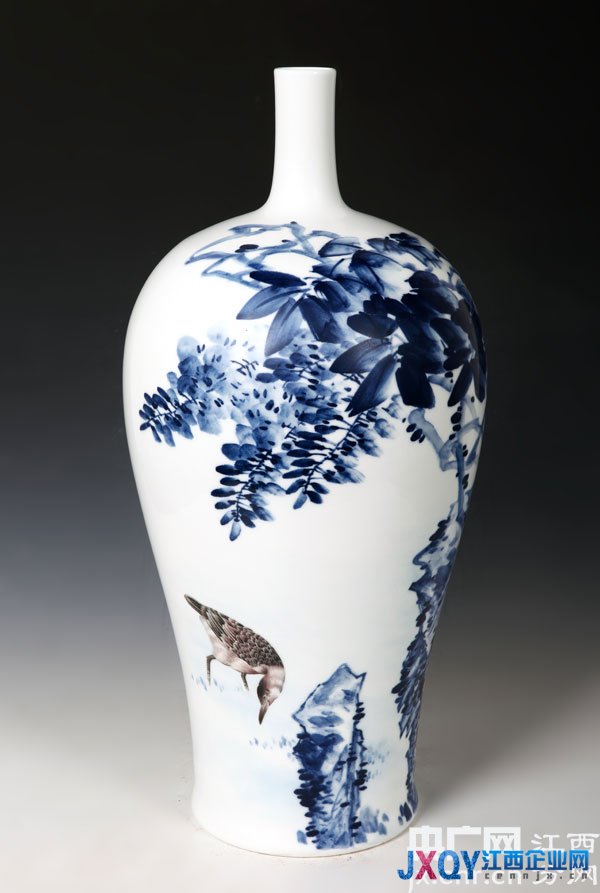 幾年前,他最有代表性的藝術(shù)創(chuàng)作還要屬寫意青花,洪南雨用自己獨(dú)特的陶瓷藝術(shù)語言,形象的表現(xiàn)自己的思想意識和審美感受。從2004年開始,他專攻寫意青花,他筆下的寫意青花花鳥不只是簡單的形式摹寫,而是涵映世界廣大精微于胸的精神抒發(fā)。沒有浮躁,沒有刻意,他憑借寧靜的心襟,去發(fā)現(xiàn)天地間深沉的意境。