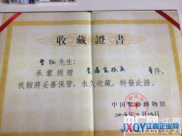 瓷板畫《賞瀑》榮獲中國宜興國際盆藝節(jié)金獎并被中國紫砂博物館收藏