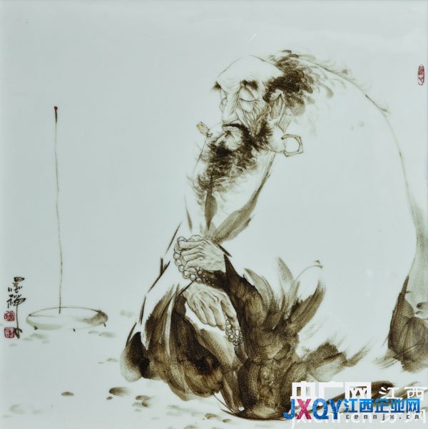后來一次偶然機(jī)會,他潸然醒悟,陶瓷作為特殊的載體,有別于國畫宣紙、油畫布,有它自己的特性,他找到了自己所缺失的東西,從此潛下心來鉆研創(chuàng)作。