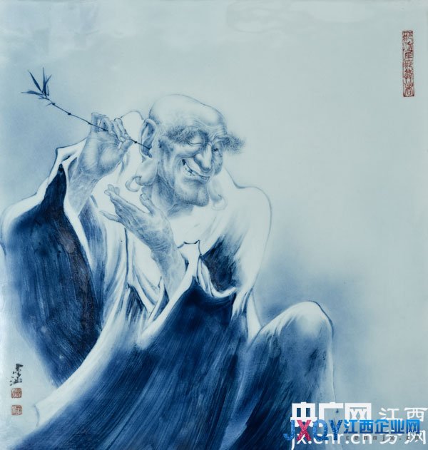 他的作品取法自然,不拘一格,手法工寫兼?zhèn)?,無論筆、指,飄逸灑脫,線條流暢,筆墨渾厚、大氣、自然、且畫路寬廣,所繪人物花鳥、山水、走獸形神兼?zhèn)?,栩栩如生,他的人物畫蒼勁、老辣、古拙、奇崛,所繪神話人物瓷畫顯示的是洗練,簡潔,是空白的妙用,是一種歷史文化感的表現(xiàn)和發(fā)掘。