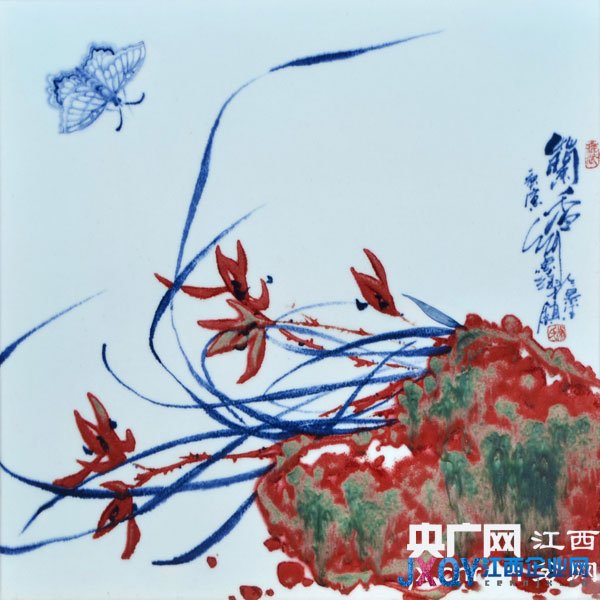 2003年,在畫鷹時,他無意中發(fā)現(xiàn)指掌作畫有意想不到的效果,指甲劃過的一道細(xì)細(xì)的線很好地表現(xiàn)了鷹的羽毛紋路。從此陶瓷指掌畫成了他的標(biāo)識之一,他用手指畫的牡丹,一朵朵嬌艷盛開、別具特色。