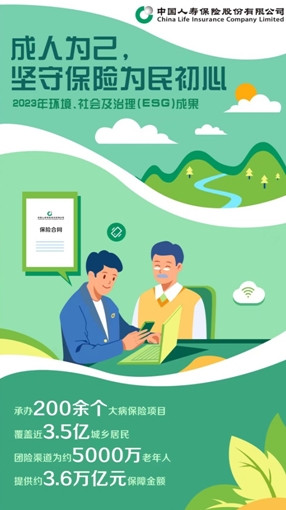 “成己為人,成人達(dá)己”是中國人壽的核心理念,保險(xiǎn)為民亦是ESG里關(guān)于“Social”社會(huì)維度的一種生動(dòng)體現(xiàn)。