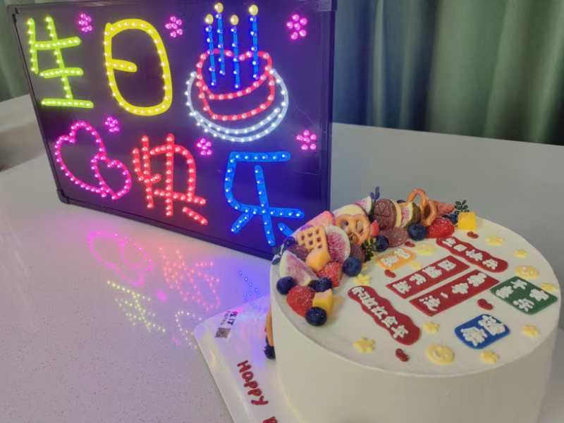 在這個(gè)特殊的日子里,尊敬的肖育華總給我們壽星準(zhǔn)備了誠摯的祝福,送上親筆書寫的生日賀卡,更是感謝每一位在平凡崗位上發(fā)光發(fā)熱的同事們。因?yàn)橛写蠹遥喜兄Р拍軋F(tuán)結(jié)共進(jìn),勇爭一流。