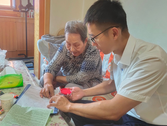 工作人員上門為客戶許奶奶辦理業(yè)務(wù)