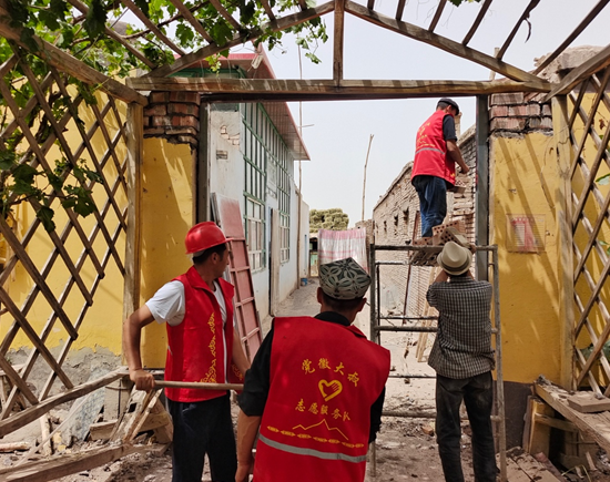 阿克陶縣玉麥鎮(zhèn)霍伊拉艾日克村駐村工作隊隊員幫助村民維修房門
