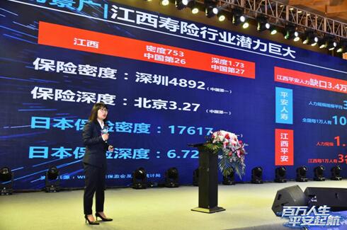 大會最后,由平安人壽江西分公司副總經理王麗發(fā)布“百萬經理人”計劃2.0,同時向大家介紹平安集團雄厚的實力以及領先一步的科技平臺。