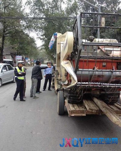 早上10點左右,交警三大隊曙光中隊在副中隊長萬文華的帶領下,在景瑤線路口設置臨時檢查卡點對過往車輛進行安全檢查,當民警正有條不紊的開展檢查時,遠處一輛向前慢慢挪動的拖拉機引起了民警的注意。從遠處看去,明顯超高了,待車駛近,民警立即攔下檢查,繞到車后一看,連民警都嚇一跳,拖拉機后面竟然還裝著一輛超大的收割機,這收割機不僅車身比拖拉機寬,而且裝在拖拉機上也沒有做任何的安全措施,只是靠著收割機自身的剎車固定在車上的,這樣的裝載十分的危險,極易引發(fā)交通事故,民警要求駕駛員出示相關證件,并將收割機卸下,轉用其它方式運走。剛開始駕駛駛員還不以為然,只是說為了圖個方便,經(jīng)過檢查,民警發(fā)現(xiàn)該駕駛員的手續(xù)都齊全,便對其“動之以情、曉之以理、懾之以法”,通過民警的耐心勸說教育,駕駛員終于明白了這樣的裝載的危險性,配合民警將收割機卸下,并表示今后不會再這樣裝載了。